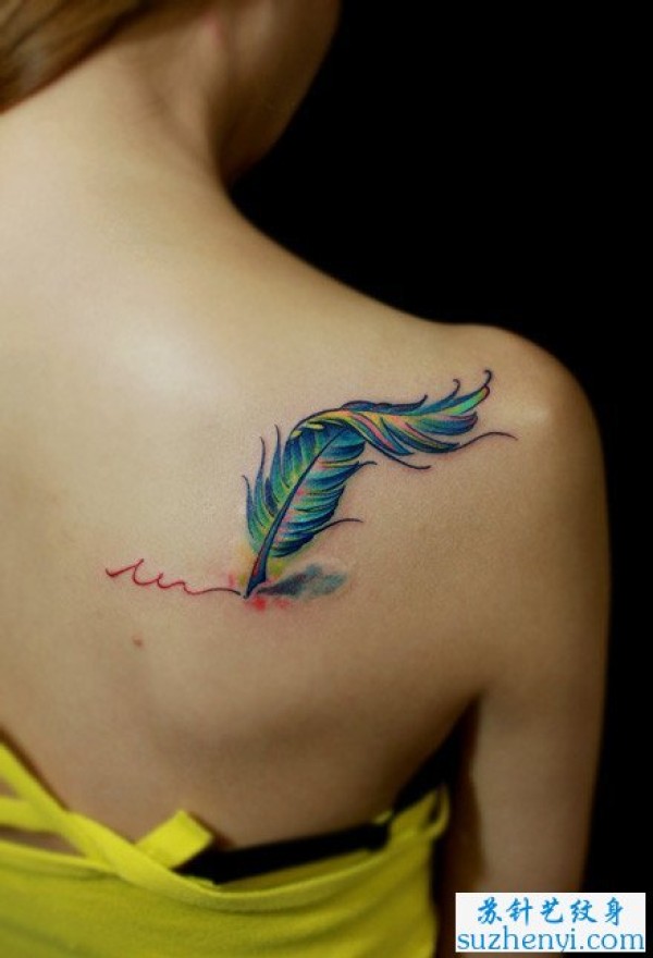 漂亮的彩色羽毛纹身图案_小清新纹身图案大全_纹身图吧