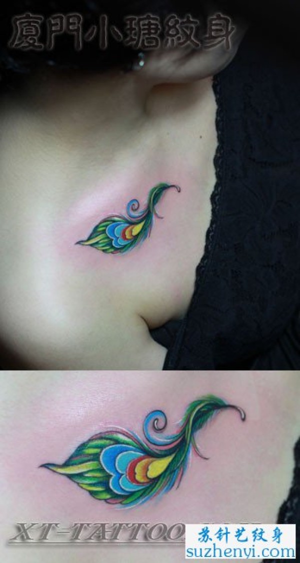 胸部好看的孔雀羽毛纹身_小清新纹身图案大全_纹身图吧