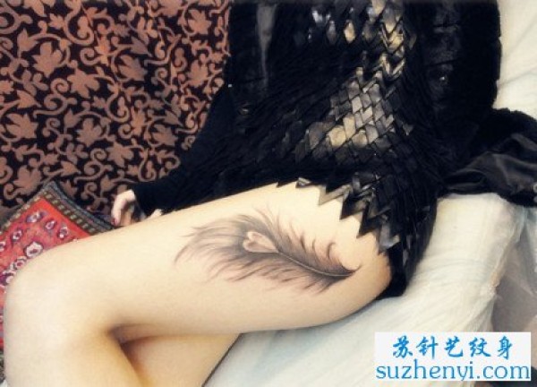 性感的美女腿部唯美的羽毛纹身图案_小清新纹身图案大全_纹身图吧