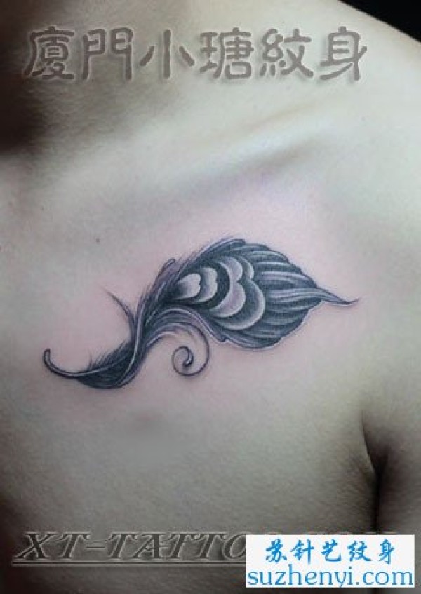 男生胸部唯美时尚的孔雀羽毛纹身图片_小清新纹身图案大全_纹身图吧