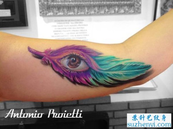漂亮的彩色羽毛眼睛纹身图案_小清新纹身图案大全_纹身图吧