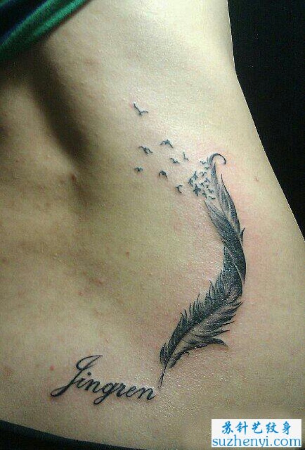 腹部羽毛纹身_小清新纹身图案大全_纹身图吧