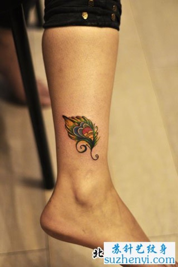 脚背彩色小羽毛纹身_小清新纹身图案大全_纹身图吧