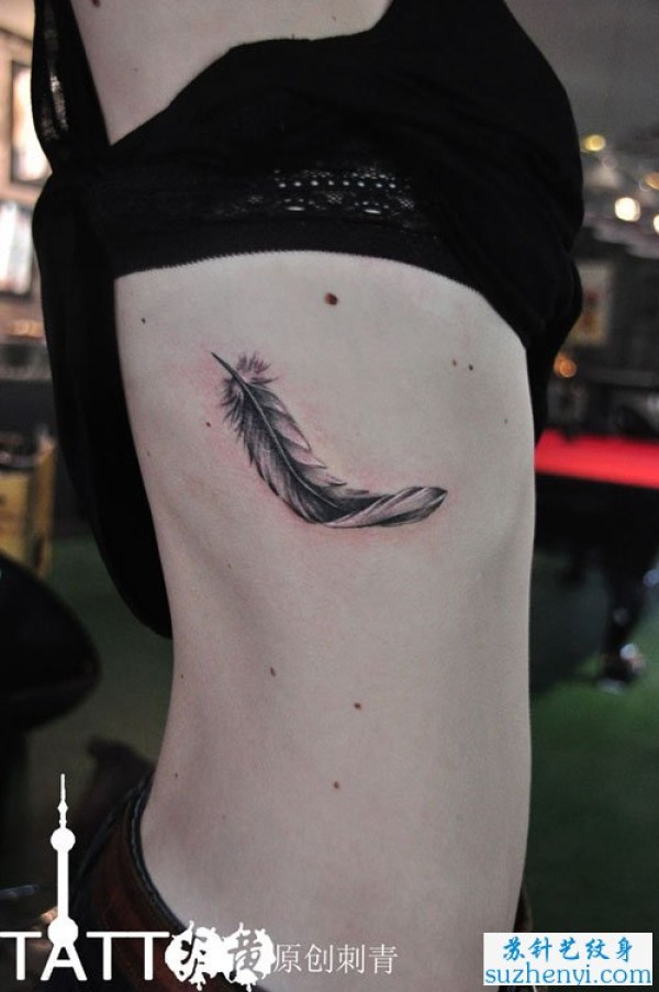 侧胸时尚精美的羽毛纹身图片_小清新纹身图案大全_纹身图吧
