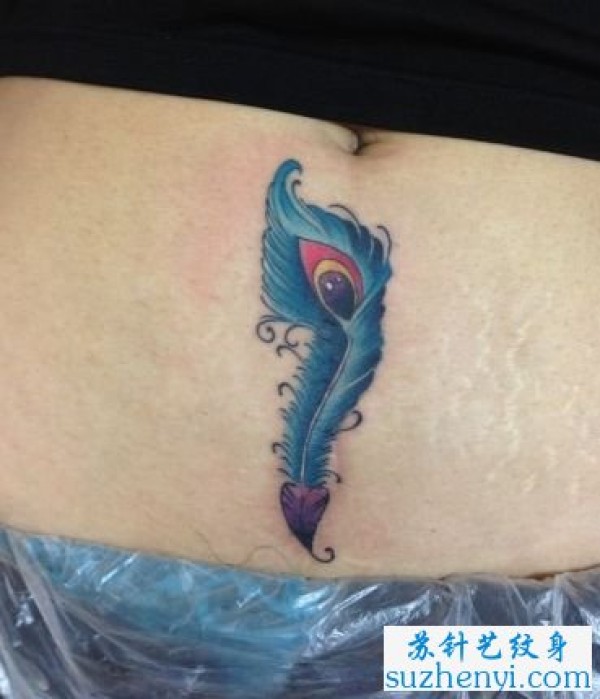 腹部彩色羽毛纹身_小清新纹身图案大全_纹身图吧
