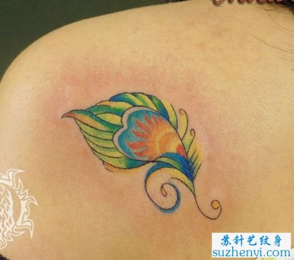 女孩子肩背小羽毛纹身图案_小清新纹身图案大全_纹身图吧