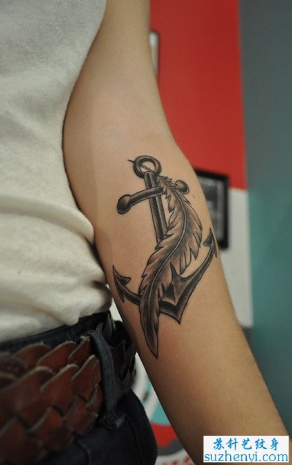 唯美的船锚与羽毛纹身_小清新纹身图案大全_纹身图吧