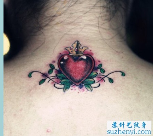颈部彩色皇冠纹身_小清新纹身图案大全_纹身图吧