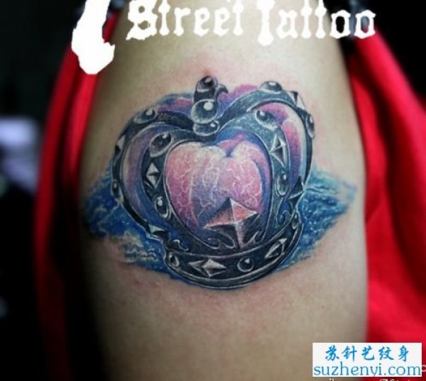 侧胸彩色皇冠与爱心纹身_小清新纹身图案大全_纹身图吧
