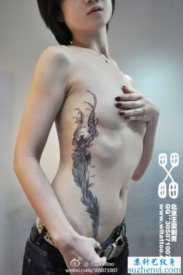 腹部羽毛纹身_小清新纹身图案大全_纹身图吧