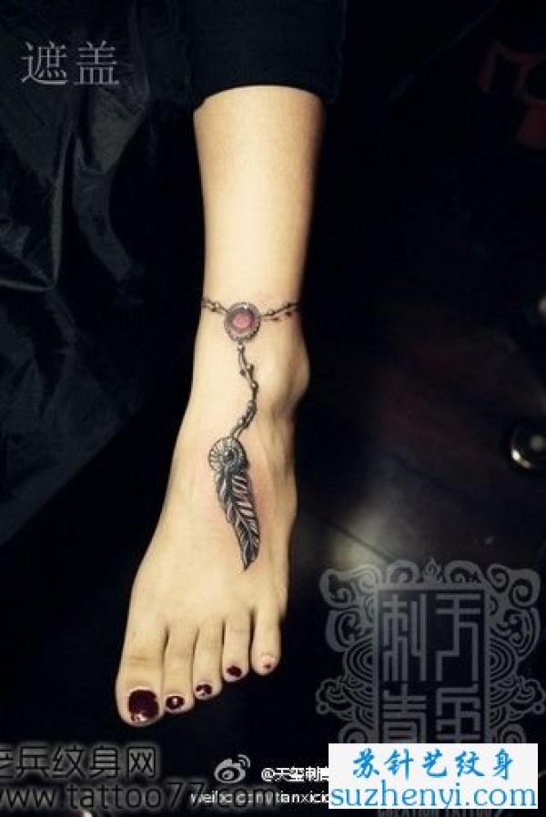 脚部羽毛脚链纹身_小清新纹身图案大全_纹身图吧