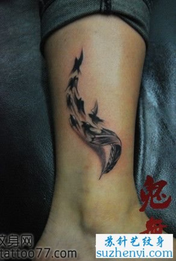 腿部羽毛燕子纹身_小清新纹身图案大全_纹身图吧