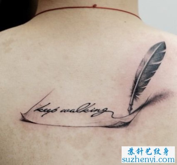 背部写字的羽毛纹身_小清新纹身图案大全_纹身图吧
