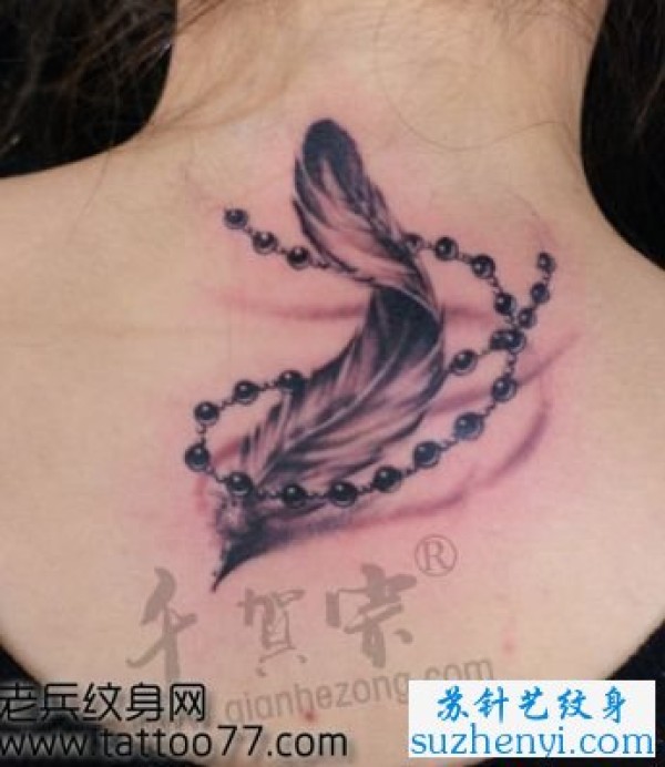 背部羽毛链条纹身_小清新纹身图案大全_纹身图吧