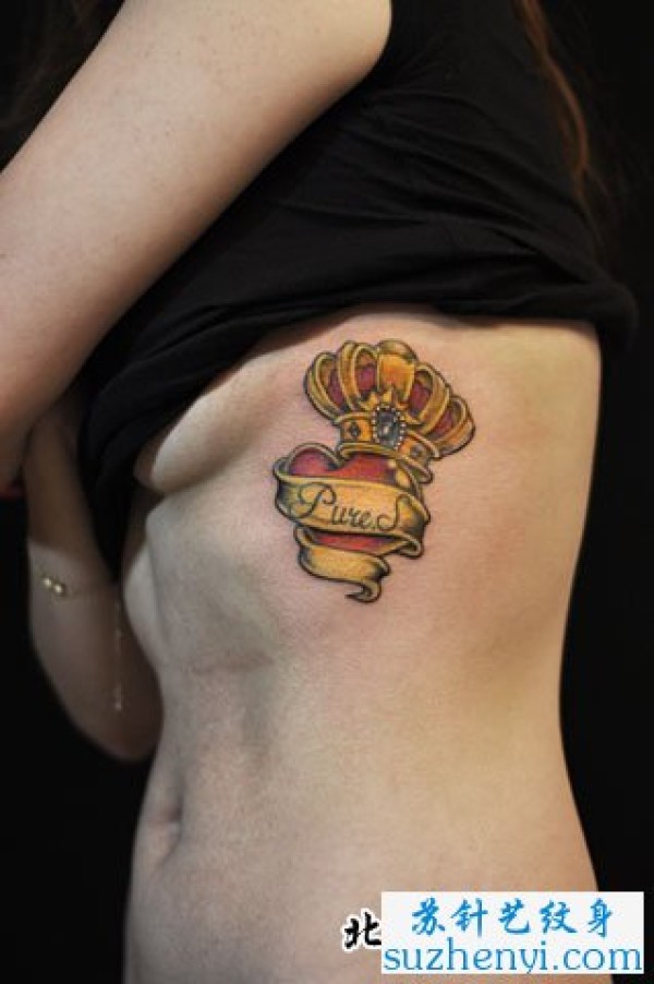 侧胸彩色皇冠与爱心纹身_小清新纹身图案大全_纹身图吧