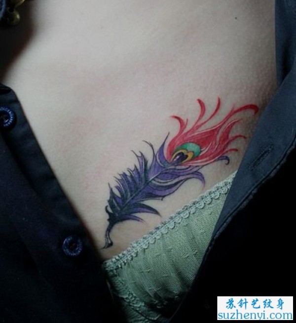 腹部羽毛纹身_小清新纹身图案大全_纹身图吧