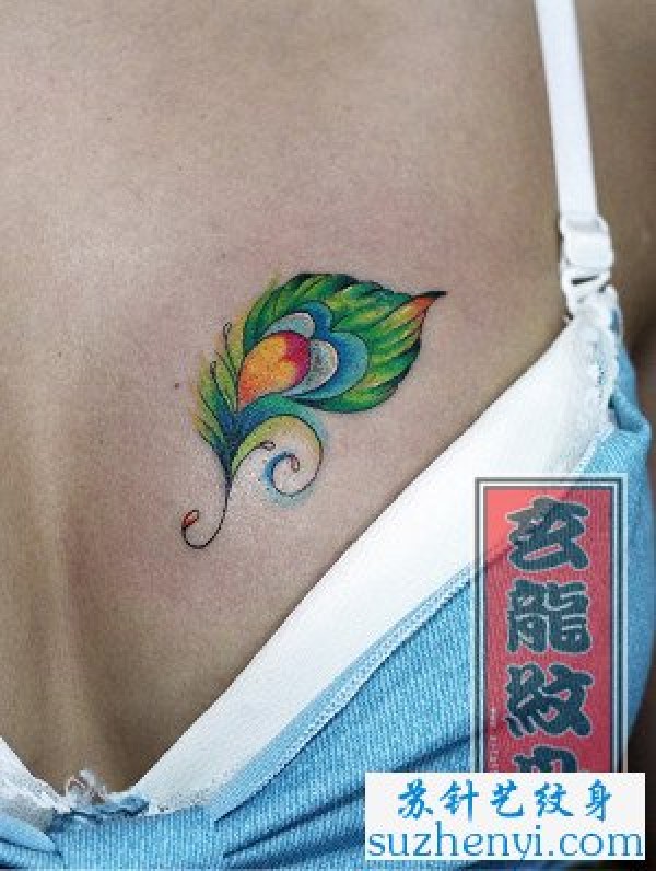 腹部彩色羽毛纹身_小清新纹身图案大全_纹身图吧
