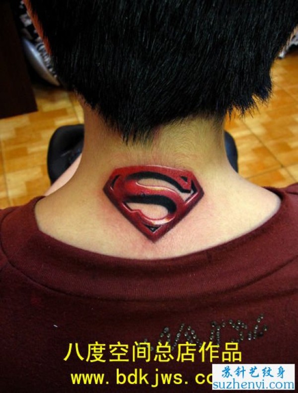 颈子超人标志纹身_小清新纹身图案大全_纹身图吧