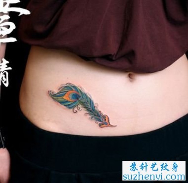 腹部孔雀羽毛纹身_小清新纹身图案大全_纹身图吧