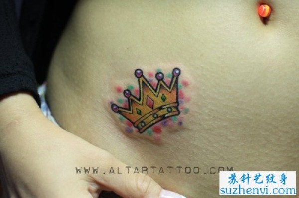 腹部彩色皇冠纹身_小清新纹身图案大全_纹身图吧