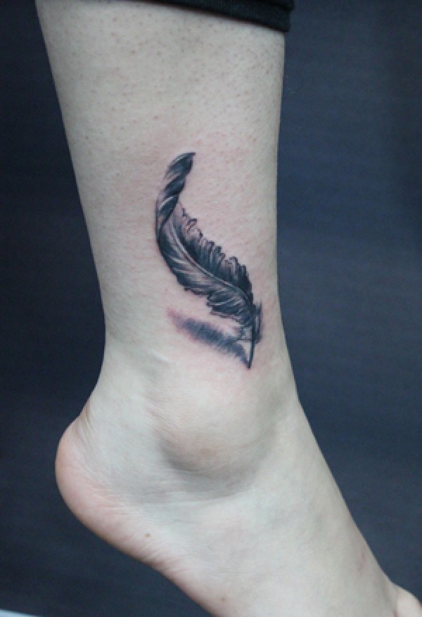 脚踝羽毛1587_小清新纹身图案大全_纹身图吧