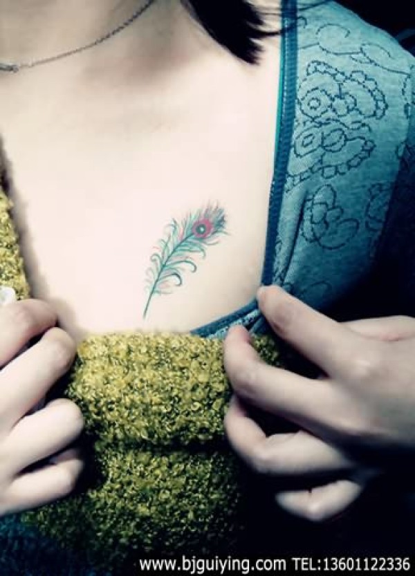 胸部好看的孔雀羽毛纹身_小清新纹身图案大全_纹身图吧