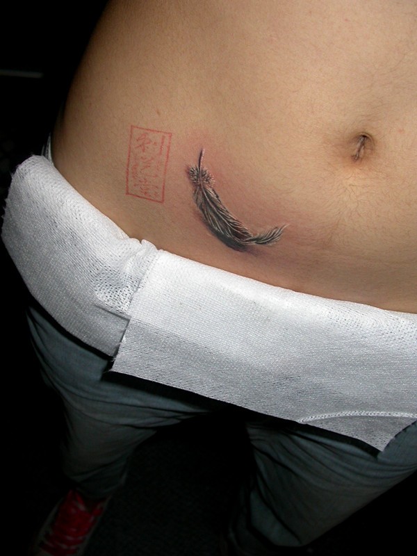 侧腹部羽毛盖疤纹身_小清新纹身图案大全_纹身图吧