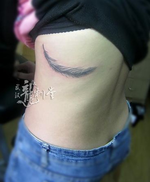 美女腰部羽毛纹身_小清新纹身图案大全_纹身图吧