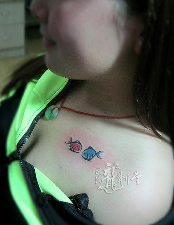 胸部纹身小清新纹身亲嘴鱼纹身_小清新纹身图案大全_纹身图吧