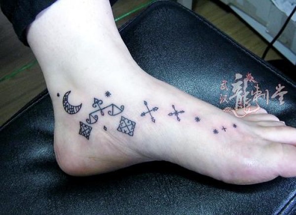 脚背彩色小羽毛纹身_小清新纹身图案大全_纹身图吧