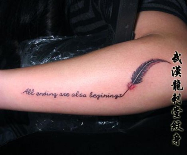 羽毛文字纹身为汉口纹身顾客打造_小清新纹身图案大全_纹身图吧