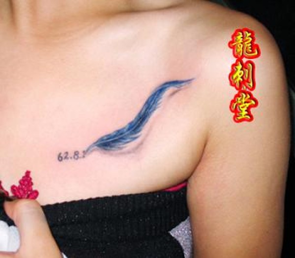 羽毛纹身性感胸部纹身_小清新纹身图案大全_纹身图吧