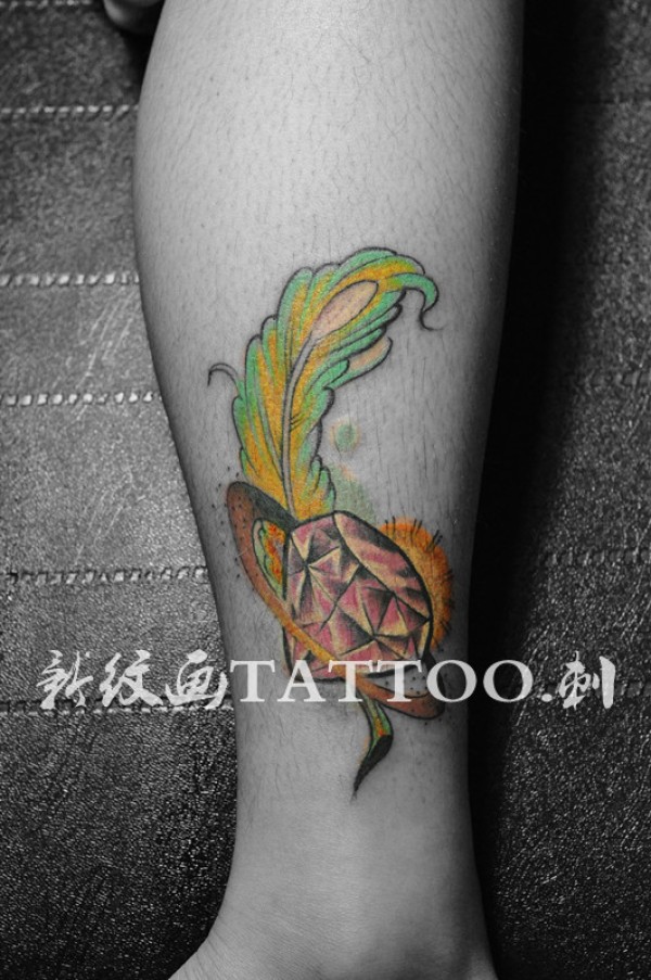羽毛钻石彩图_小清新纹身图案大全_纹身图吧