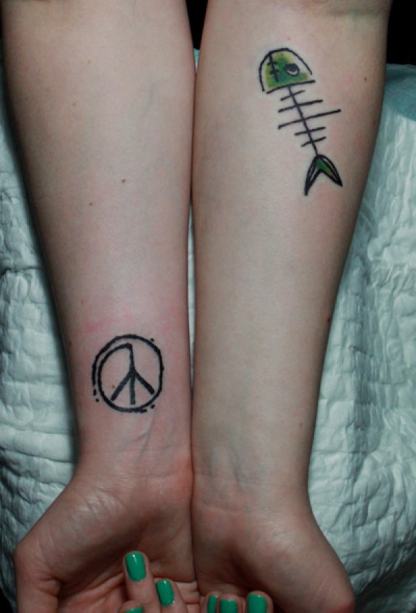 欧美小清新反战鱼骨头纹身_小清新纹身图案大全_纹身图吧