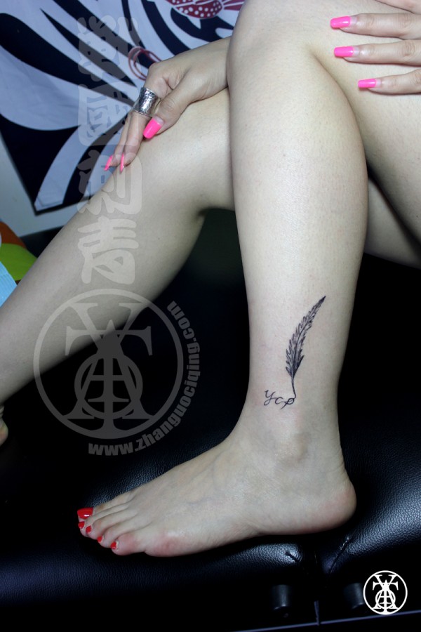腿部羽毛纹身_小清新纹身图案大全_纹身图吧