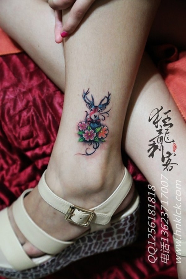 小清新小鹿纹身黑色、彩色作品价格 多少钱_小清新纹身图案大全_纹身图吧