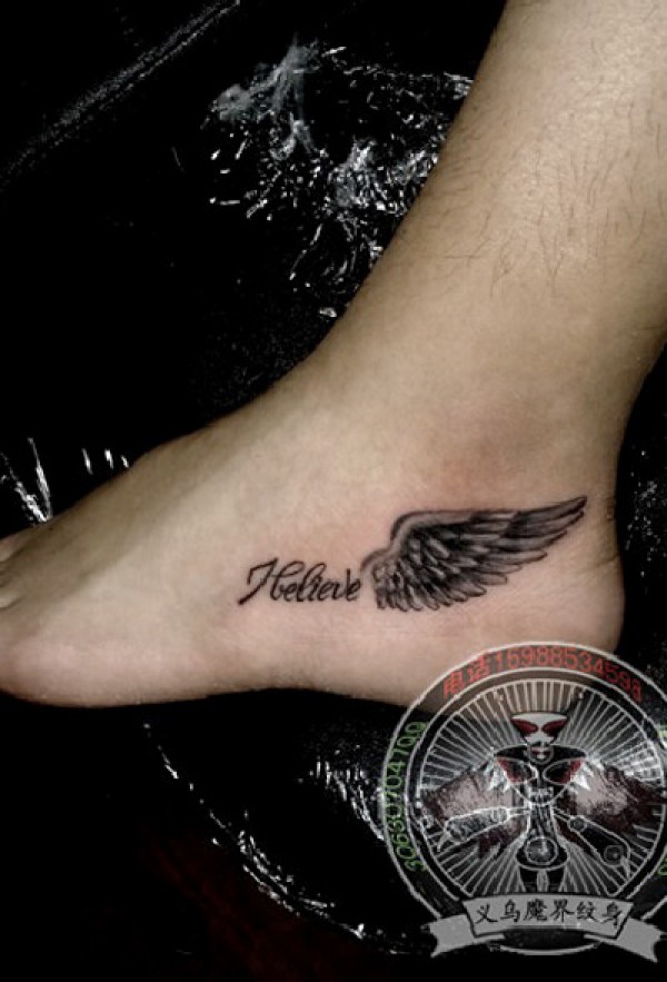 小清新脚踝英文签名 漂亮翅膀纹身_小清新纹身图案大全_纹身图吧