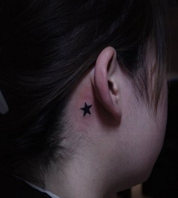 女性耳部小清新五角星纹身图案,南昌哪里纹身_小清新纹身图案大全_纹身图吧
