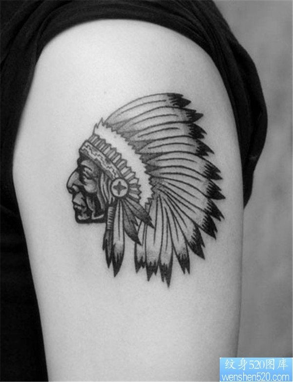 黑灰肖像印第安头像纹身图案_肖像纹身图案大全_纹身图吧