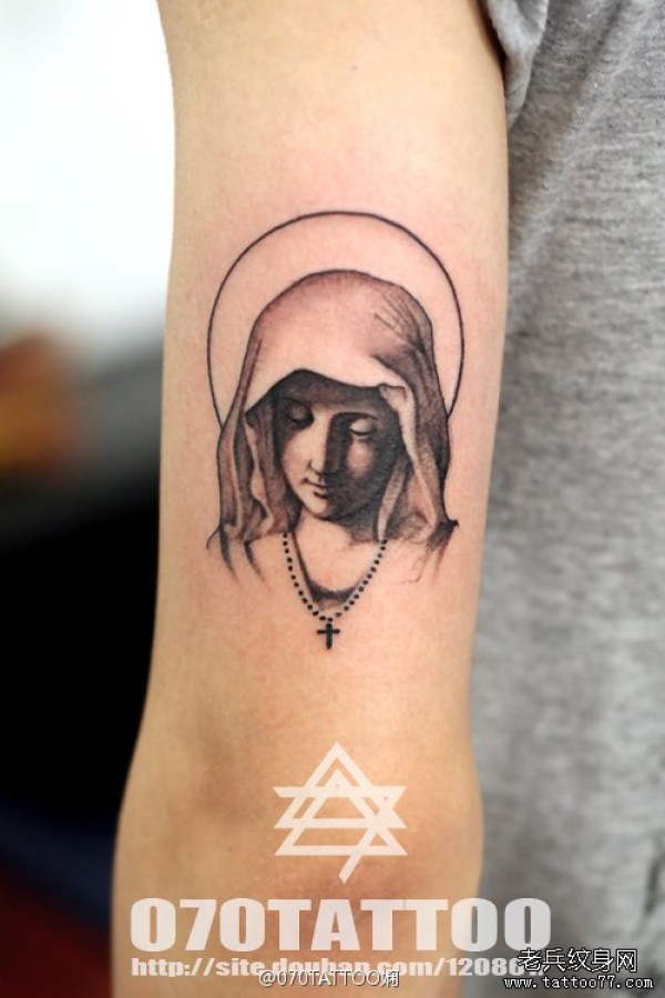 手背圣母肖像纹身图案_肖像纹身图案大全_纹身图吧