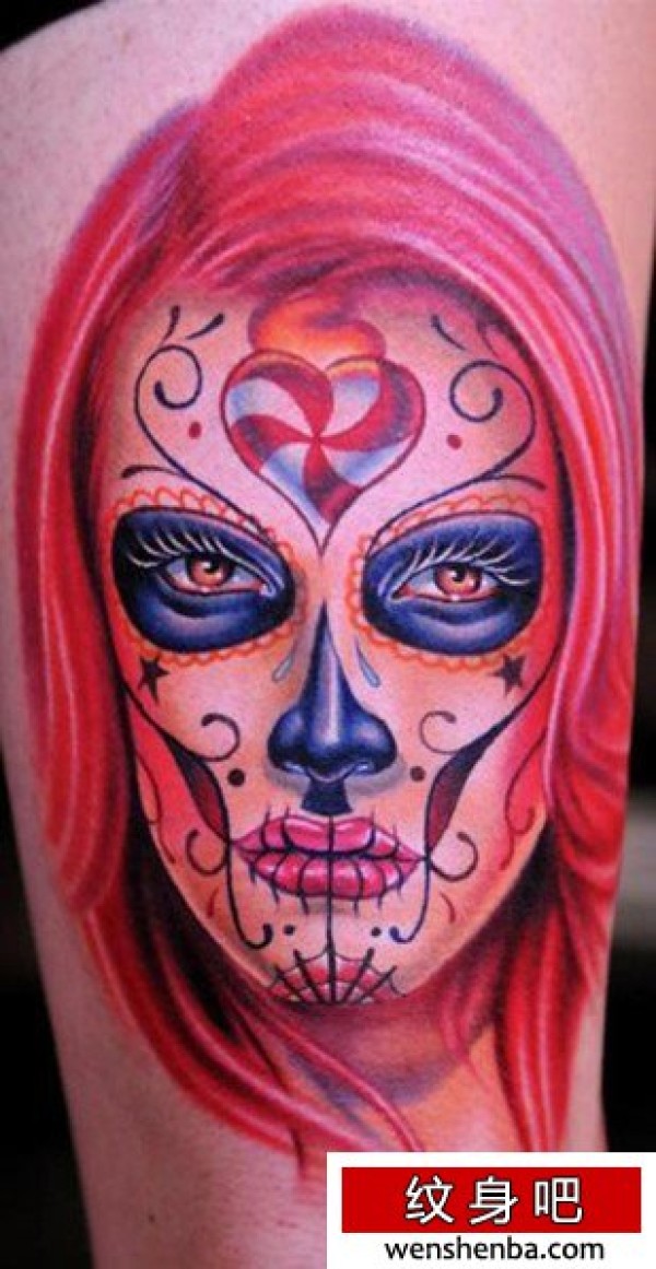 大红色彩色肖像纹身_肖像纹身图案大全_纹身图吧