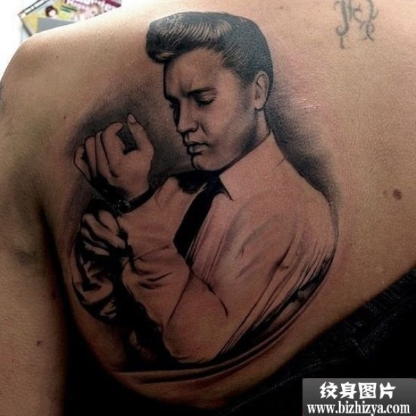 半肩猫王人物肖像纹身图案图片_肖像纹身图案大全_纹身图吧