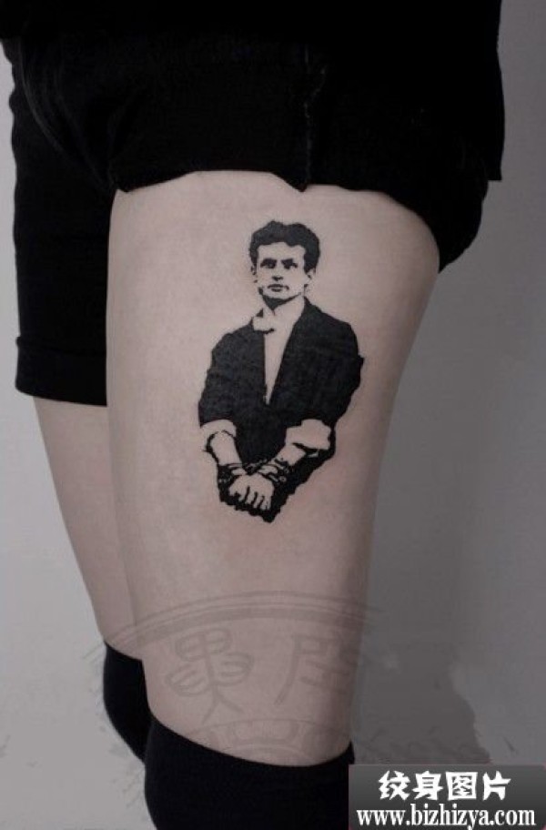 大腿上一款性感时尚的人物肖像纹身图案_肖像纹身图案大全_纹身图吧
