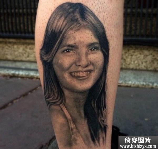 美女肖像腿部刺青图案图片_肖像纹身图案大全_纹身图吧