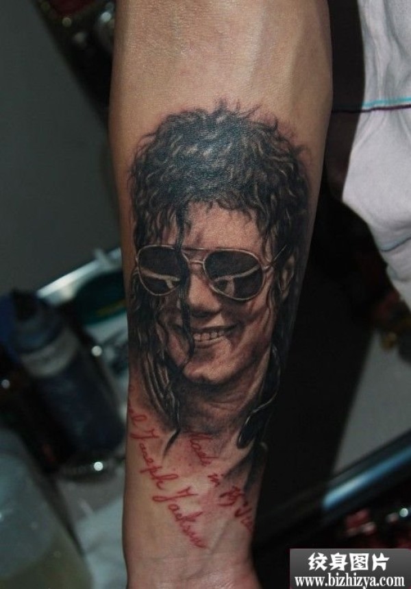 个性杰克逊肖像手臂纹身图案图片_肖像纹身图案大全_纹身图吧