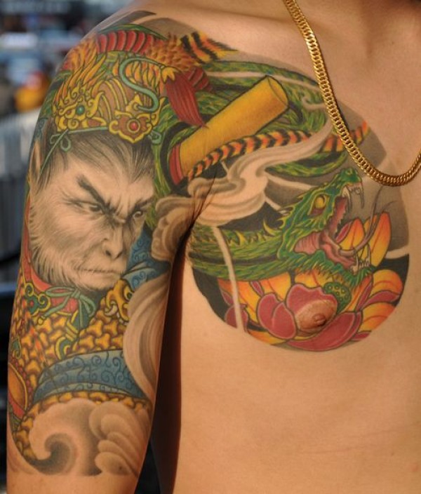 中国神话人物西游记元素中超帅的半胛孙悟空纹_肖像纹身图案大全_纹身图吧