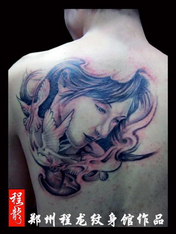 推荐一款满背美女肖像纹身图案_肖像纹身图案大全_纹身图吧