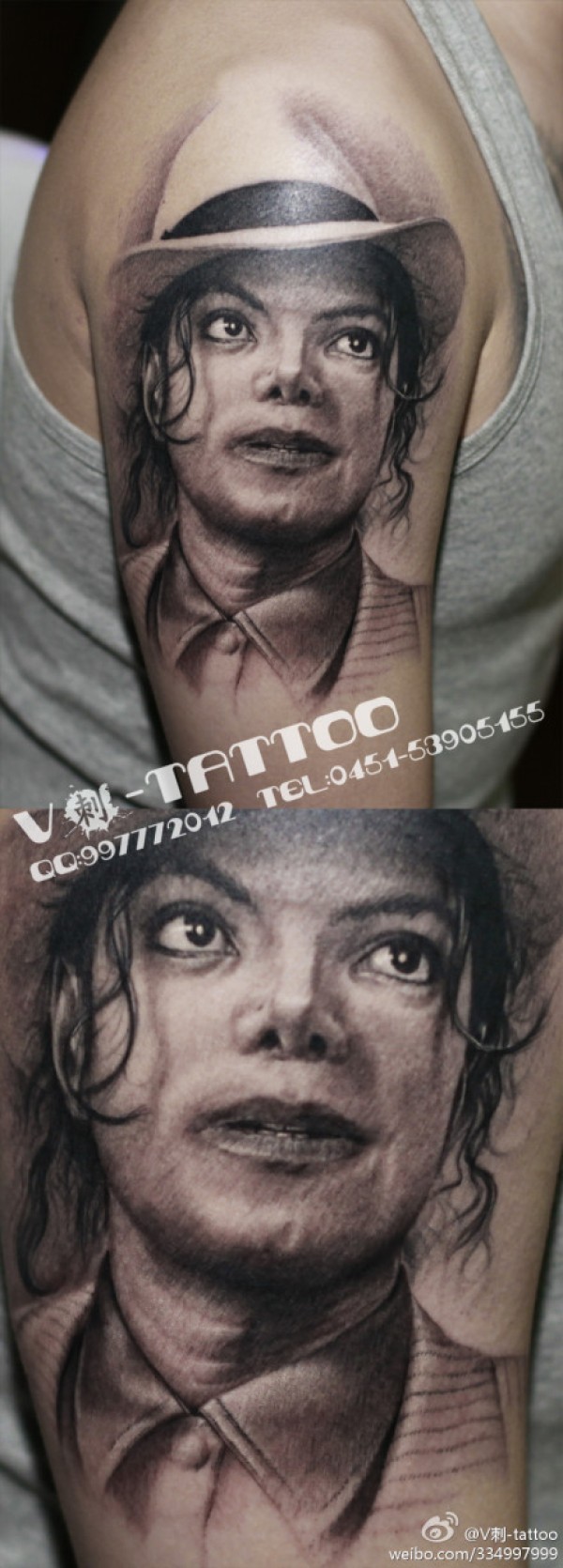 手臂时尚很酷的迈克杰克逊肖像纹身图案_肖像纹身图案大全_纹身图吧