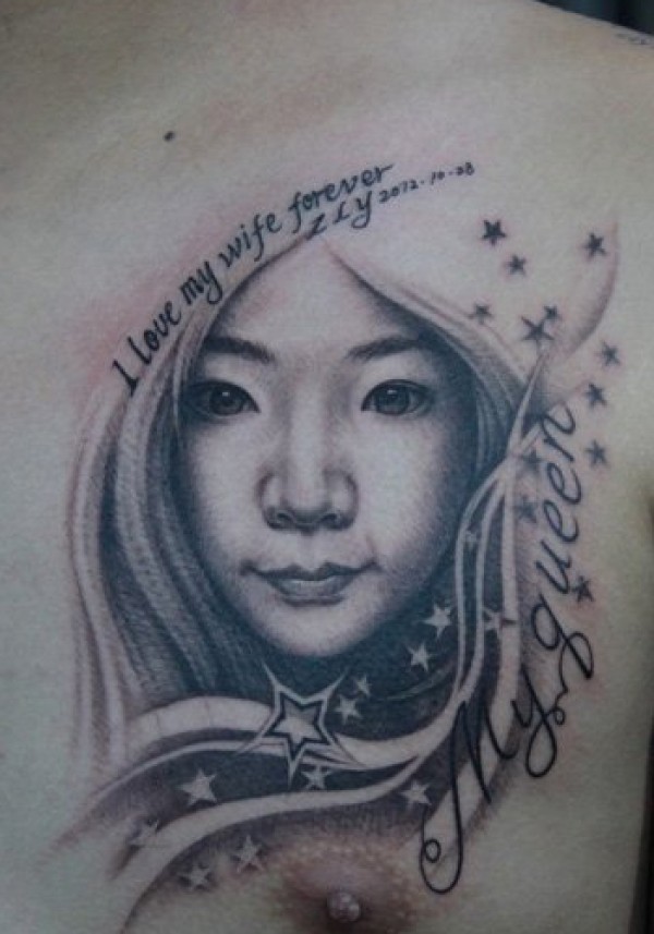 胸口美女肖像纹身_肖像纹身图案大全_纹身图吧