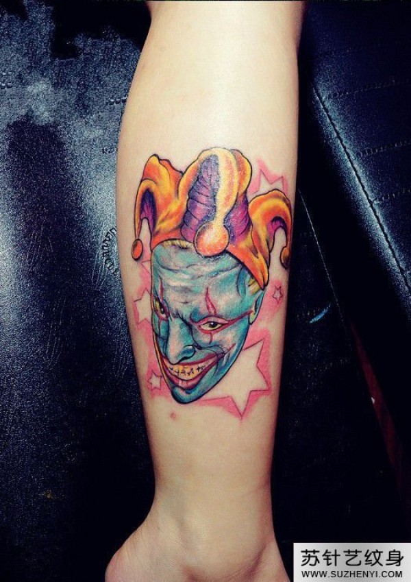 彩色小丑头像纹身_肖像纹身图案大全_纹身图吧